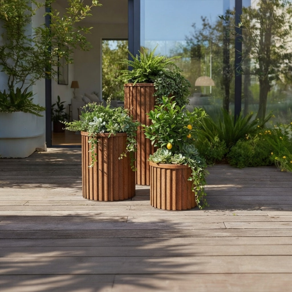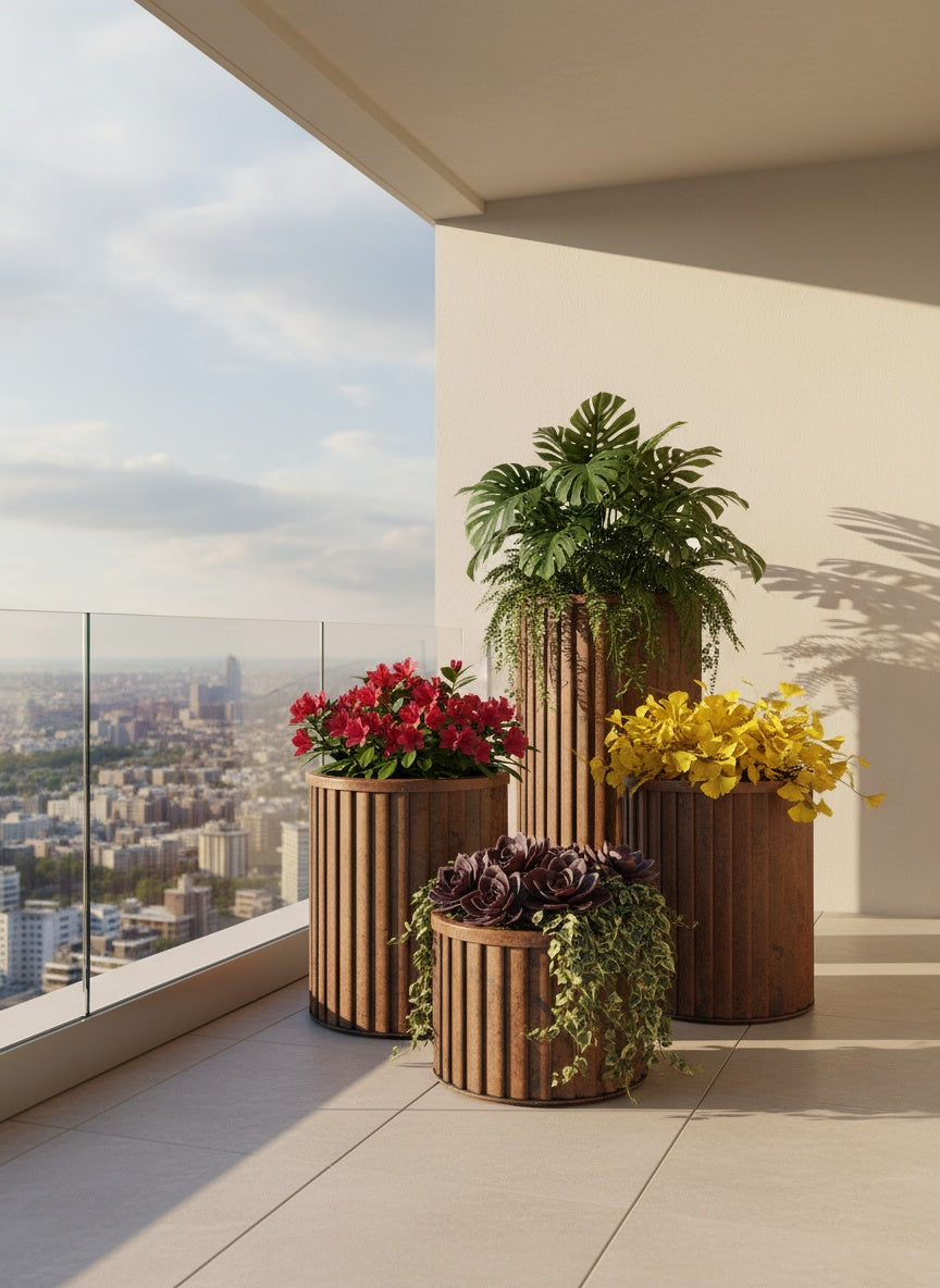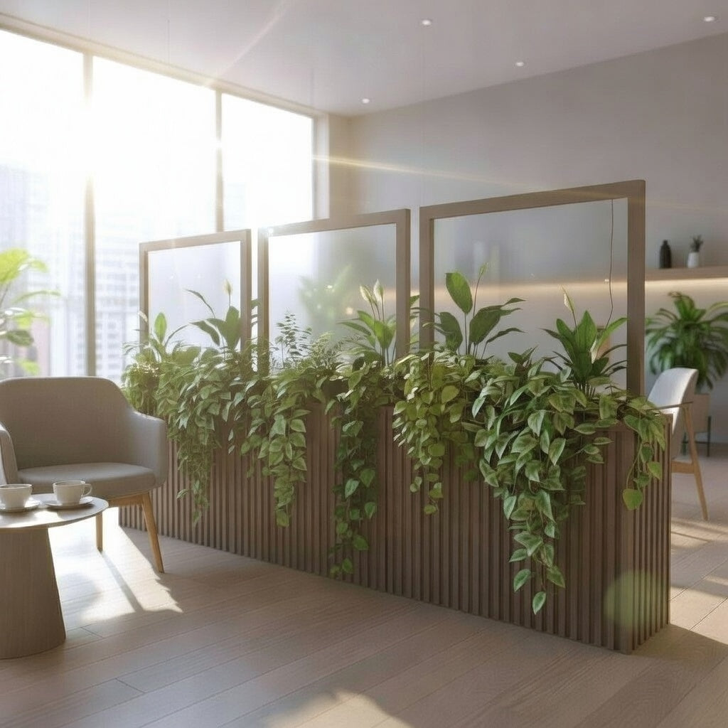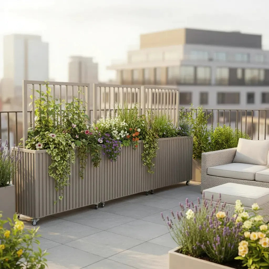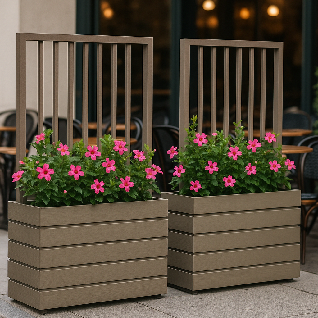 These stylish divider planters elegantly introduce greenery to any area. They provide an ideal solution for enhancing privacy on balconies and patios, whether in residential settings or dining establishments.